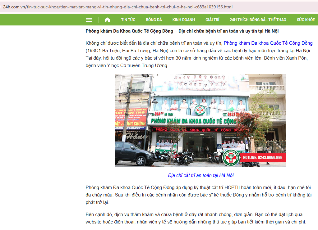 - 24h – “Tiền mất, tật mang’ vì tin những địa chỉ chữa bệnh trĩ chui ở Hà Nội” => 🔗 Link: 24h.com.vn