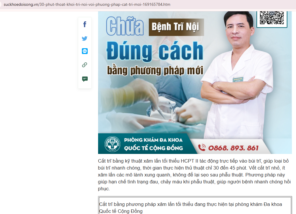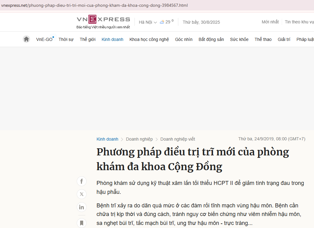 - VnExpress – “Phương pháp điều trị trĩ mới của Phòng khám Đa khoa Cộng Đồng” => 🔗 Link: vnexpress.net