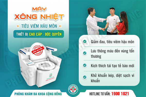 Đặc biệt, chỉ có tại Phòng khám Đa khoa Quốc tế Cộng Đồng: Bệnh nhân sau điều trị áp xe hậu môn tại phòng khám sẽ được sử dụng Máy xông nhiệt tiêu viêm hậu môn để tăng hiệu quả điều trị, giảm đau và tái tạo cũng như nhanh lành vết thương hơn. Hiện tại, chỉ có Đa Khoa Quốc Tế Cộng Đồng là cơ sở chuyên khoa hậu môn duy nhất có thiết bị này để người dùng sử dụng sau khi điều trị.