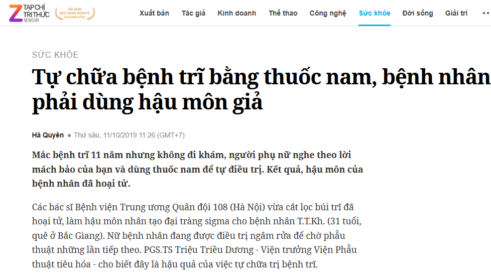 Thuốc chữa trĩ nội: Từ chảy máu đến hoại tử chỉ vì lựa chọn sai